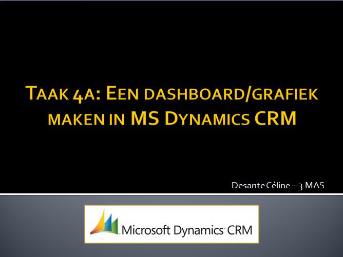 Voor het onderdeel: werken met dashboards en grafieken in MS Dynamics CRM, kregen we opdrachten volgende Engelstalige instructievideo te bekijken en dit toe te passen op onze eigen CRM-omgeving.